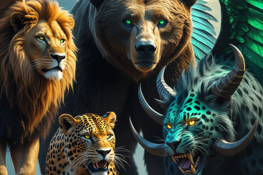 Esses animais simbolizam reinos humanos que se levantam contra Deus, mas no final, o “Ancião de Dias” (Deus) estabelece Seu reino eterno. A visão culmina com a entrega do domínio ao “Filho do Homem”, uma figura messiânica que recebe autoridade sobre todas as nações.